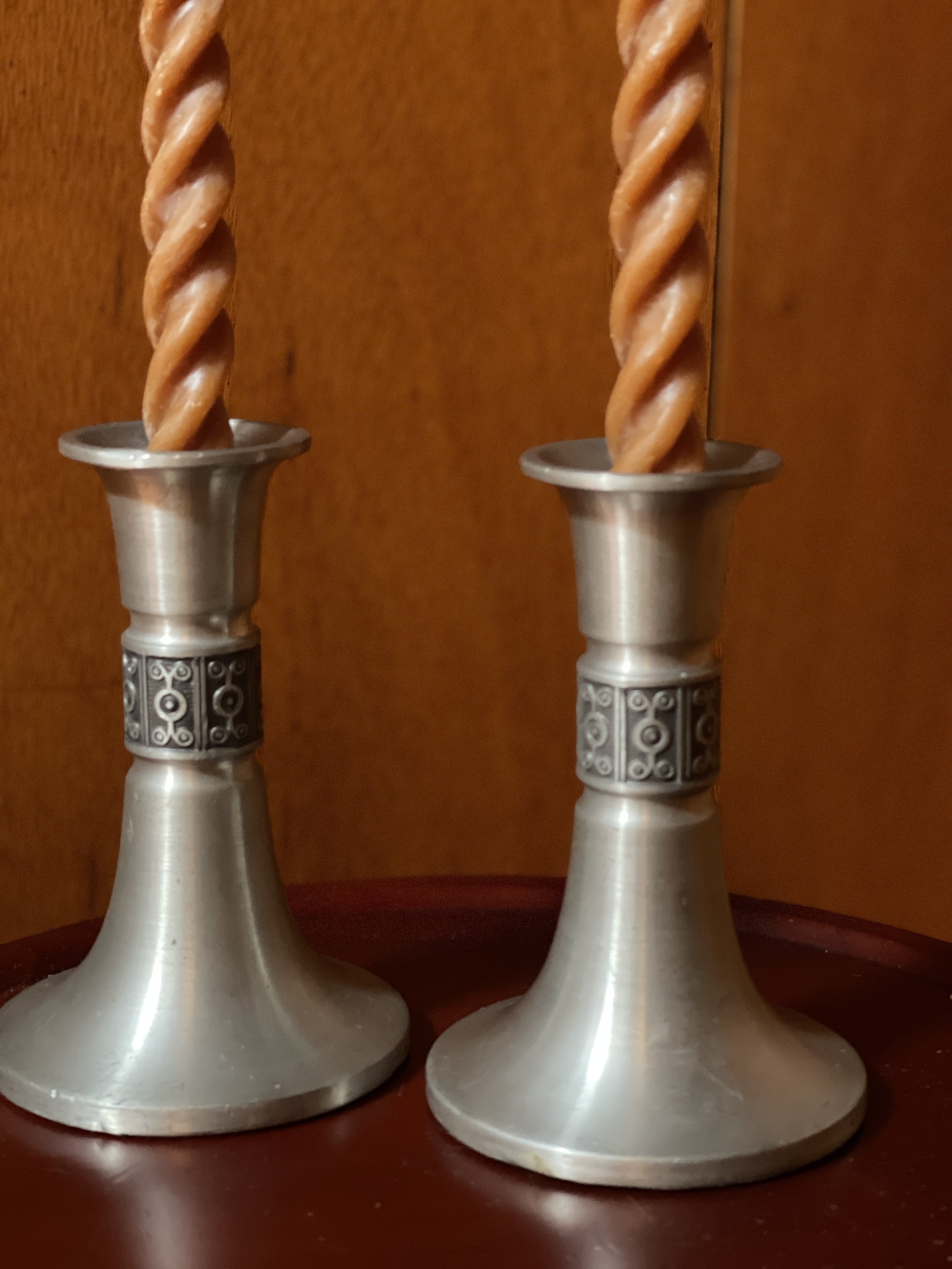 pair of norwegian haugrud norway pewter silver candle holders